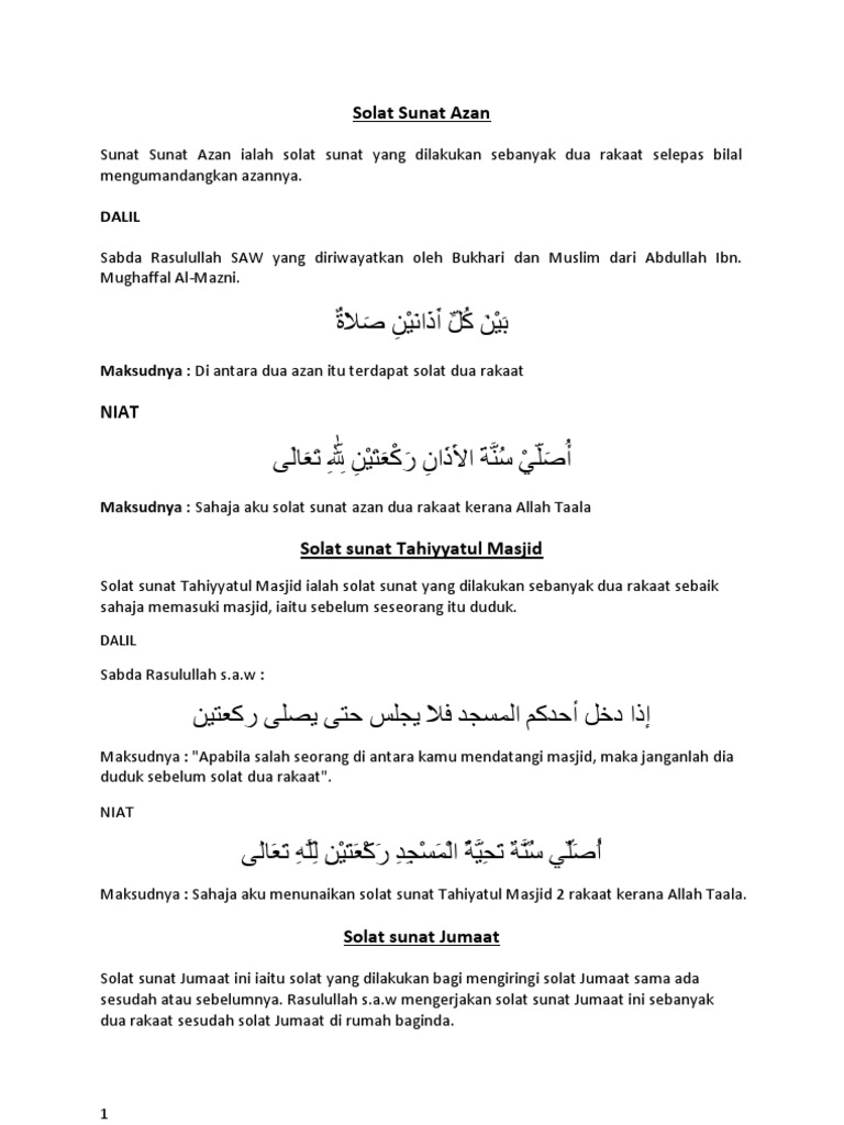 Niat Solat Sunat Sebelum Solat Fardhu - Lertyi